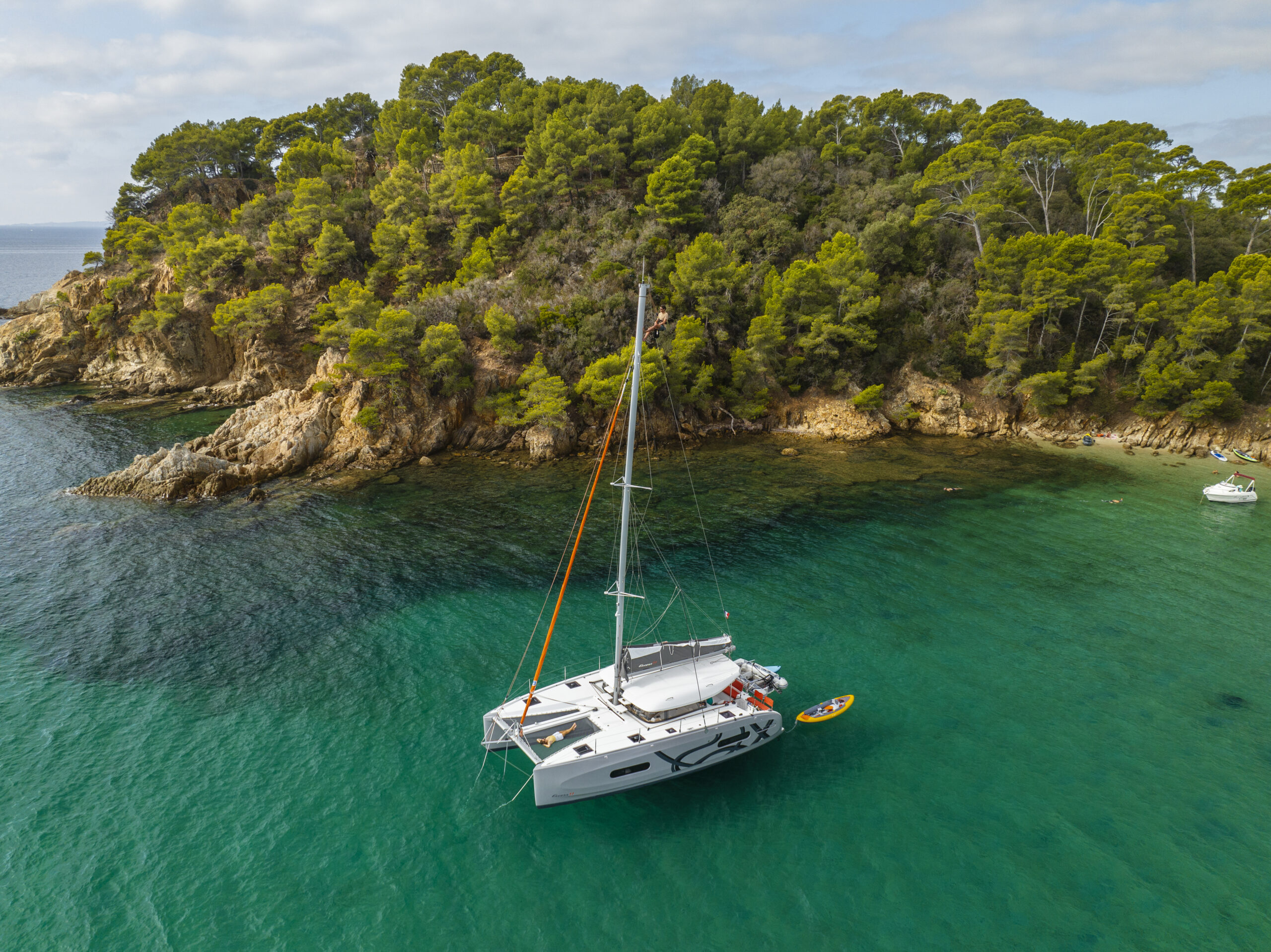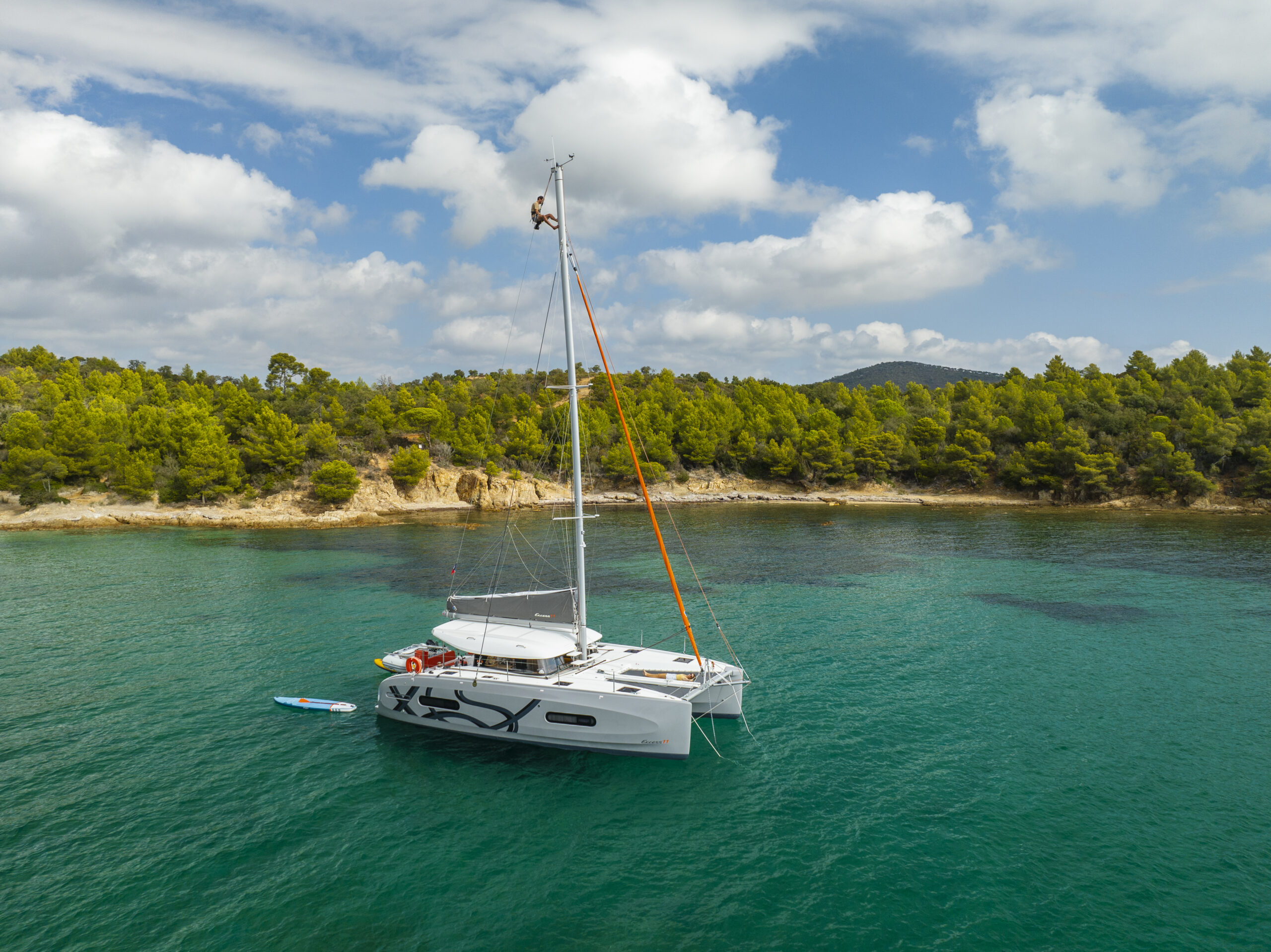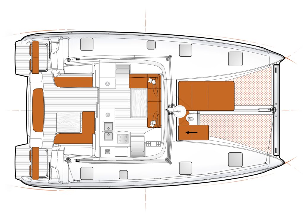 Compared to a monohull, the Excess 11 offers greater stability, reduced heel, and more usable deck space. It also provides shallower draft and better comfort at anchor, while still delivering a sporty sailing experience.