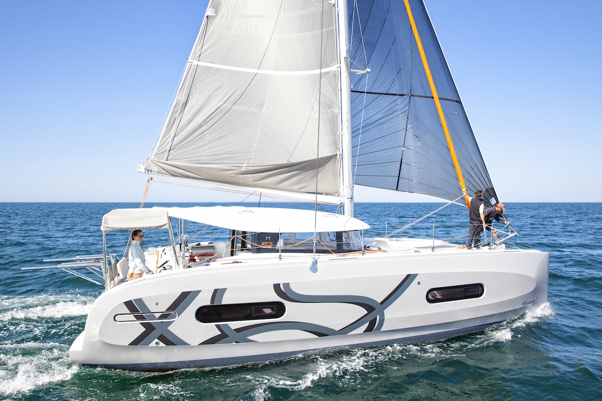 The Excess 11 is more compact and easier to handle than larger cruising catamarans. It requires smaller crews, fits more easily into marinas, and offers lower operating costs, making it suitable for owner-operators.