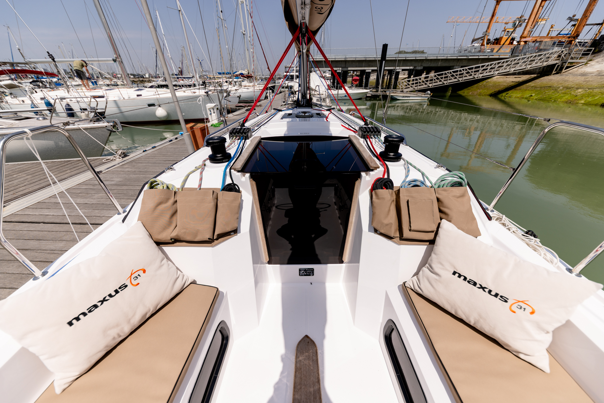 The Maxus 31 offers a surprisingly spacious interior for its size, with excellent headroom, smart storage solutions, and a comfortable salon. The layout is designed to maximize living space and usability for cruising.