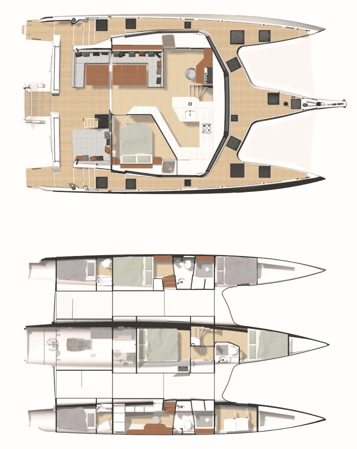 6 Lower Cabins, 3 Heads