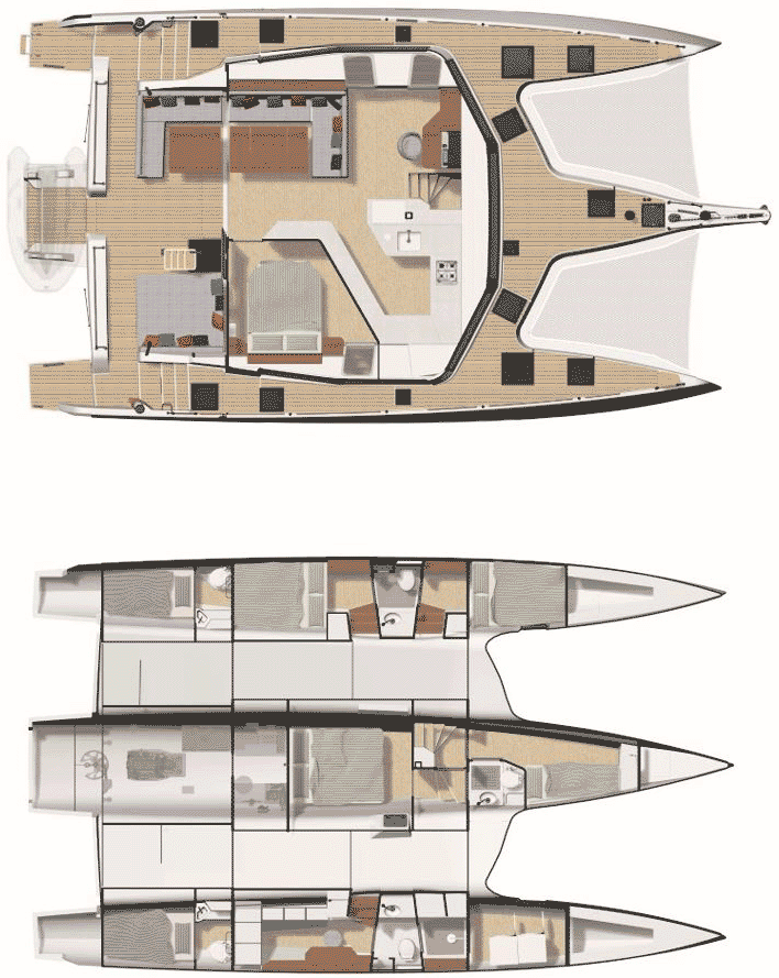 4 Lower Cabins, 3 Heads, 2 Showers
